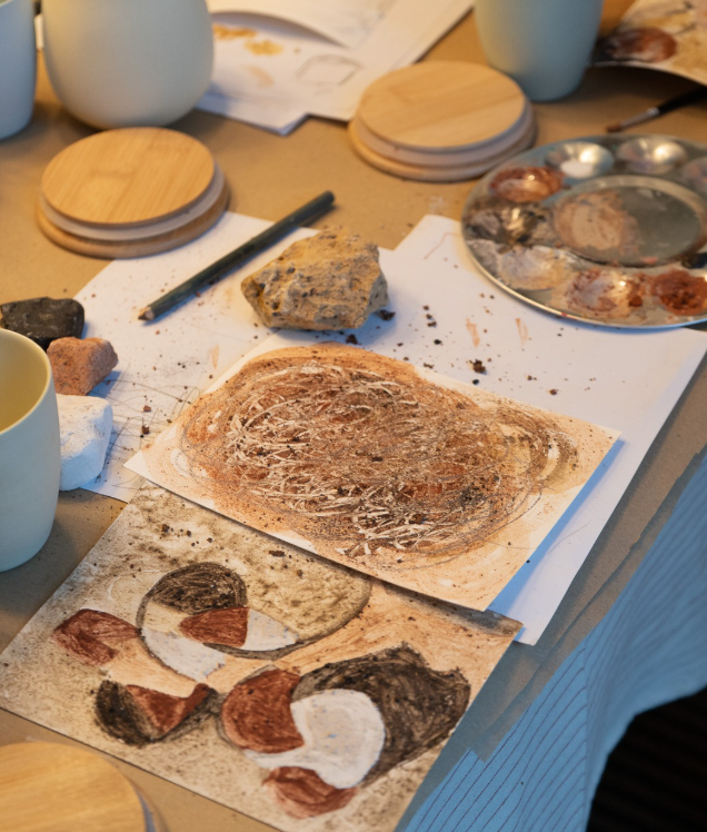 A: You'll start with creative warm-up exercises in nature, sketching trees, goats, and donkeys to uplift your mood and foster relaxation. Back in the studio, Georgie will demonstrate techniques like painting with mud and sawdust, and splashing paint Pollock-style!