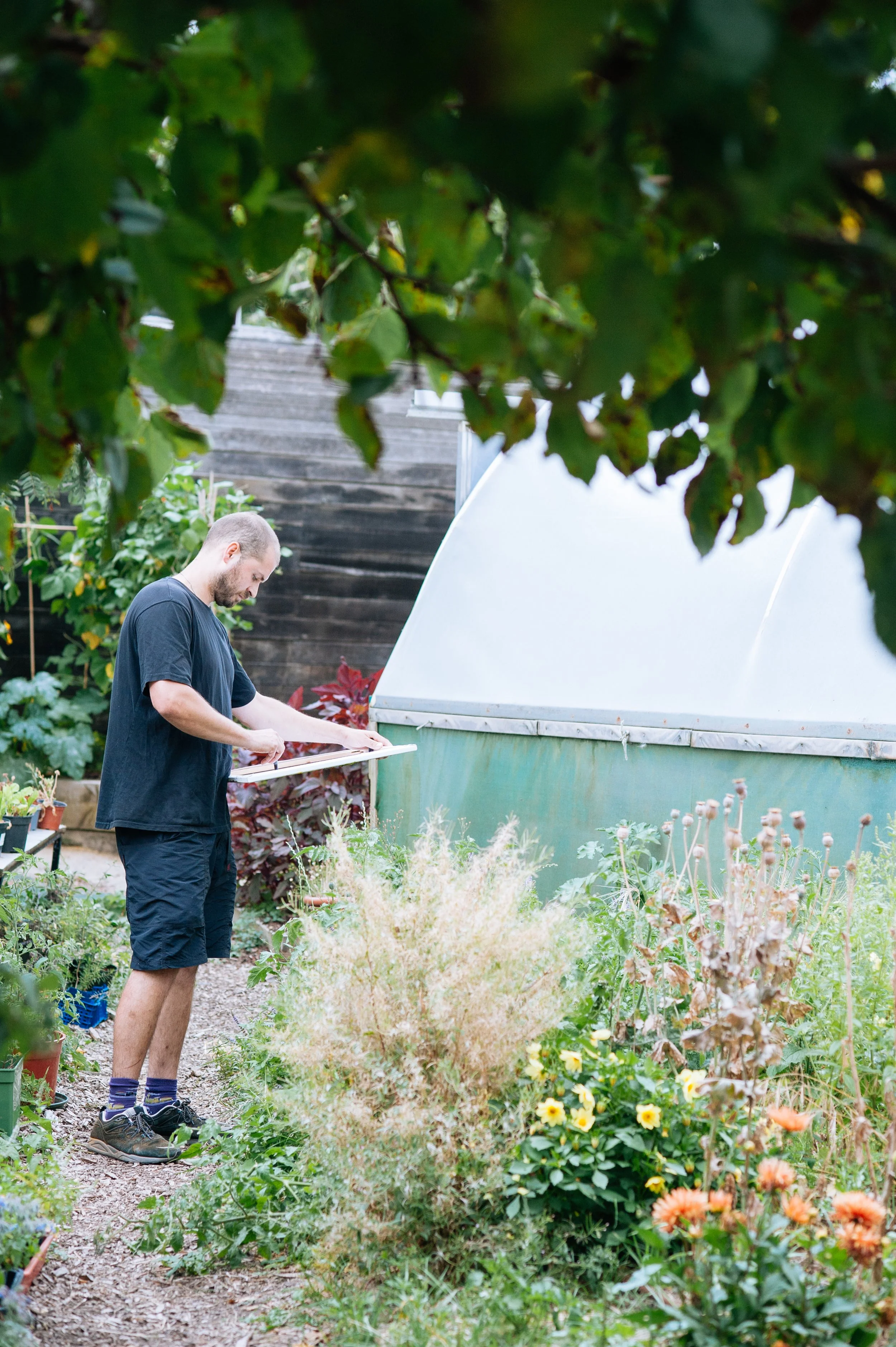 Arrive at the rural oasis of Stepney City Farm, wander past the goats and the cafe on your way to my studio.