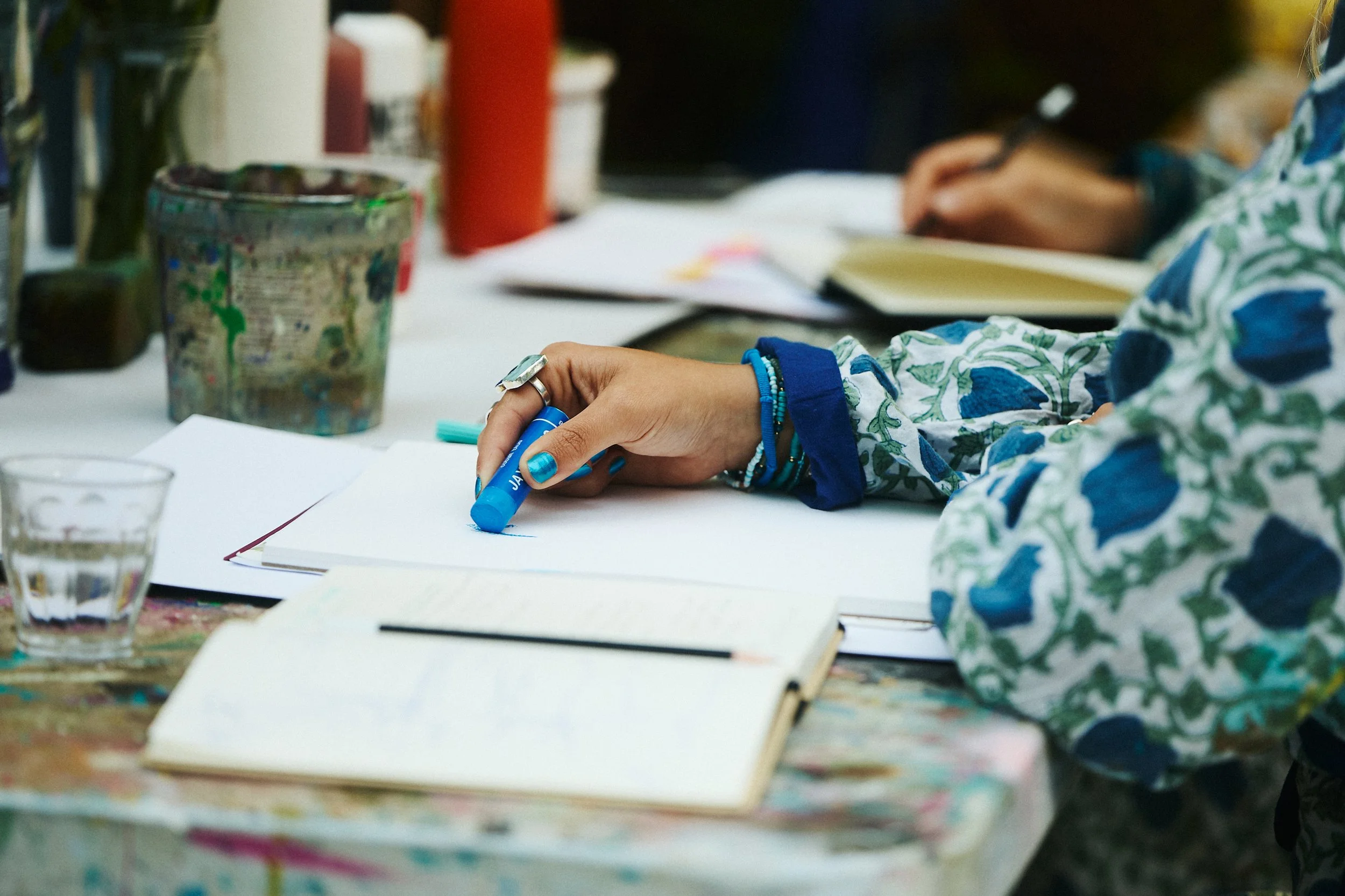 A: Totally up to you! Bring a friend or partner if you want company, but equally if you just fancy unwinding and getting creative on your own, that's great too. If you do come alone, it's really up to you whether you chat to the rest of the group or just find your own flow and stay quite quiet!